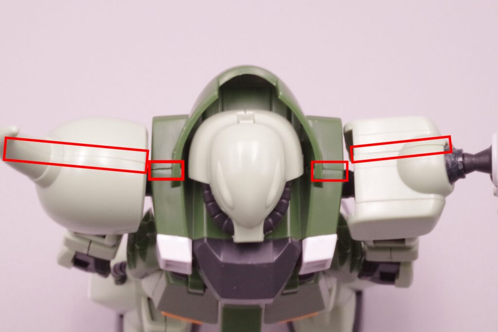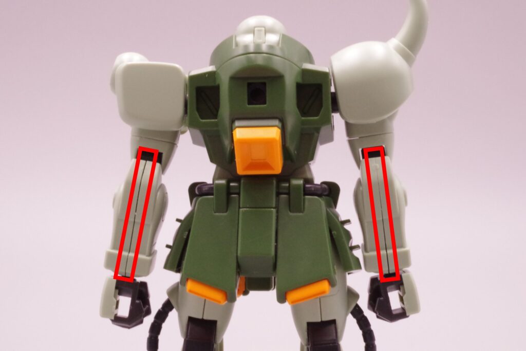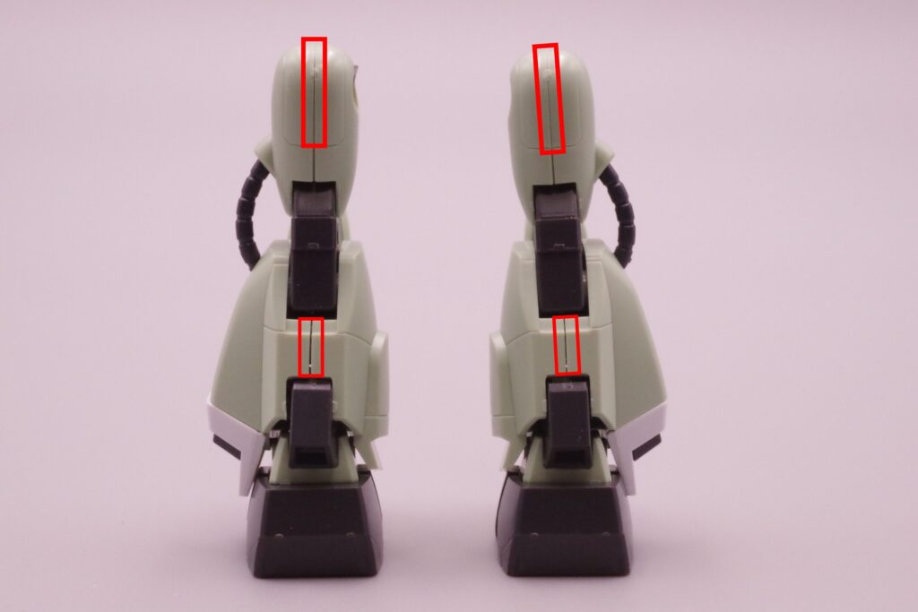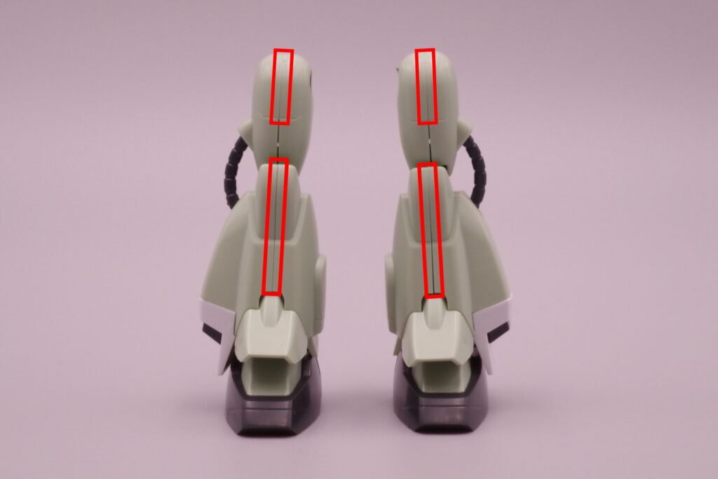 腿のモールドより上(モールドより下は設定上段落ちモールド)と膝より下に大きな合わせ目があります。