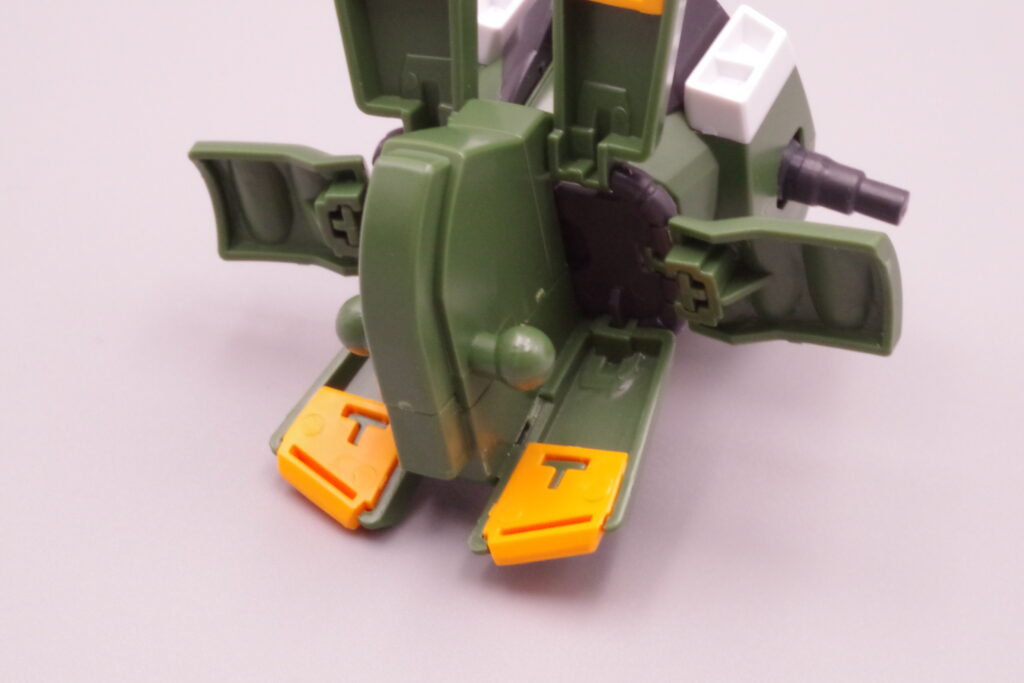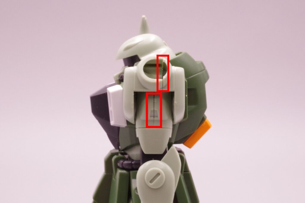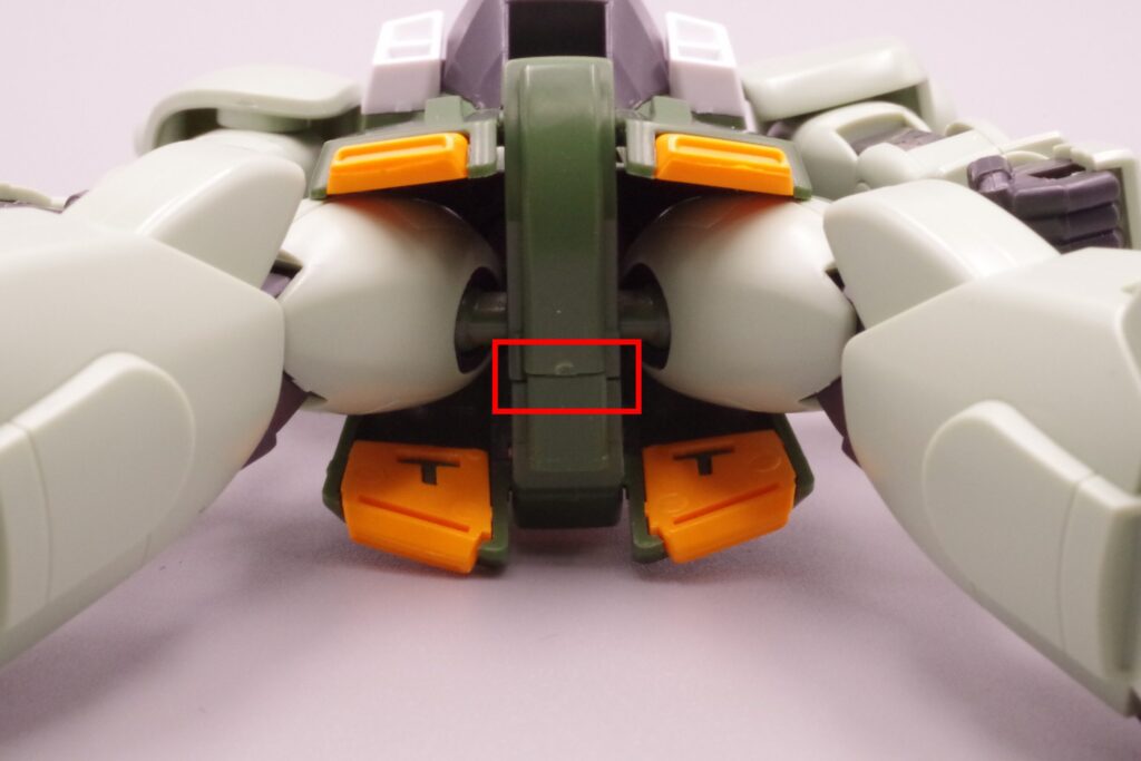 腰の後ろのパーツを下にスライドさせればマウント用の接続穴が露出し、ビーム突撃銃を取り付けることができます。