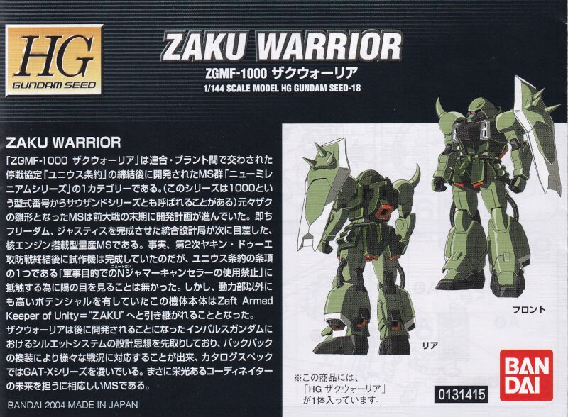 HGのSEEDシリーズの18番目のキットで、2004年発売なので結構昔のキットです。
